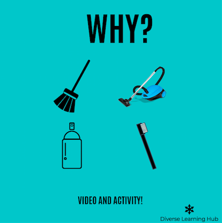 Children need to know the “why” behind each life skills task they are completing. They may wonder, “Why do I need to brush my teeth? Why do I need to wear deodorant”. These hygienic tasks may be overwhelming for some children as they may cause children to experience sensory overload. Children need to understand why they are doing something! Diverse Learning Hub offers life skills videos on topics like deodorant, brushing teeth, and cleaning. These videos explain why a task is important and also explain the steps necessary to complete each task. Review these videos with your children and ask them to take interactive quizzes on each topic after viewing.